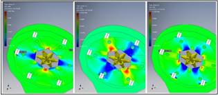 YY, YZ and ZZ section stress are shown on Figure 9 above, with the value of maximum stress of 0.824 MPa for YY section, 0.5123 MPa for YZ section and 0.7329 MPa for ZZ section.