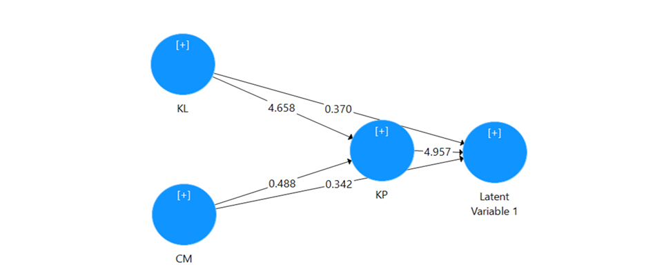 Based on Table 7 the results of the analysis of the coefficients of the structural path model are used to determine which relationships have a significant effect. The effect of the Brand Image variable (CM = X2) on Customer Satisfaction (KL = Y) with a P-Value <0.05, which is 0.645, means that the Brand Image variable has a significant influence on the Customer Satisfaction variable. Therefore, the path coefficient value of 0.043 means that the Brand Image variable and the Customer Satisfaction variable have a positive relationship so that it can be concluded that there is a significant positive effect between the Brand Image variable on Customer Satisfaction. When Brand Image increases, Customer Satisfaction, in this case students, will also increase. From the results of this hypothesis, it means that Ho is rejected and Ha is accepted.