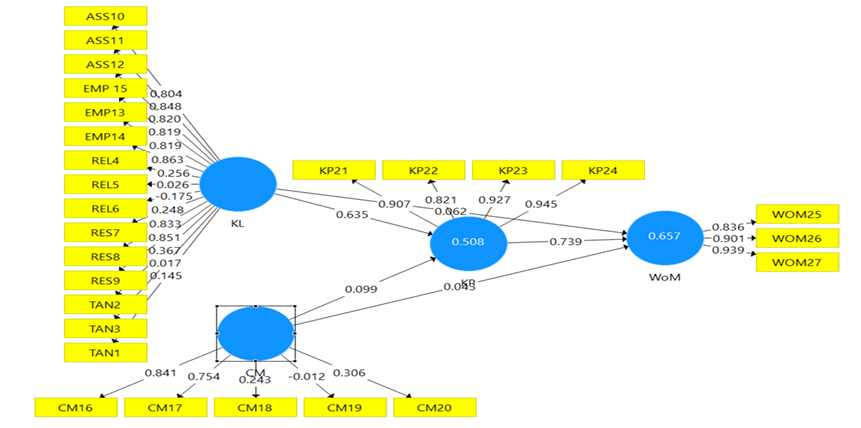 Based on Table 8, the results of the coefficient analysis of the structural path model are used to determine which relationships have a significant effect. For the indirect effect of the Brand Image variable (CM = X2) on the Positive WoM (WoM = Z) with a p-Value<0.05, which is 0.698, which means that the Brand Image variable indirectly has a significant influence on the Positive WoM variable.