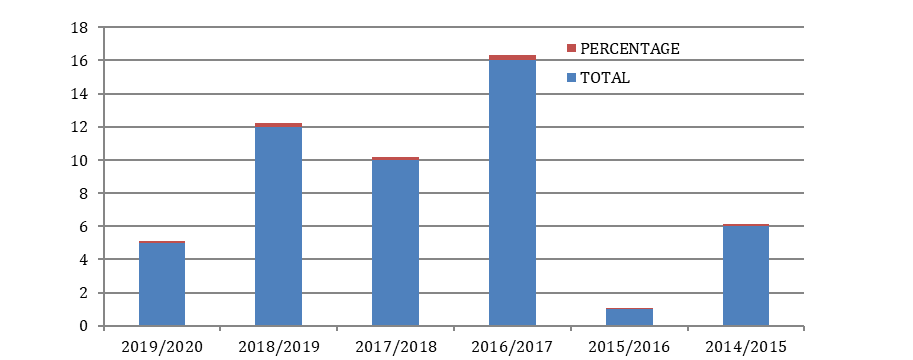 Based on Figure 4, 10% or 5 respondents from the 2019/2020 class; 24% or 12 respondents entered the 2018/2019 class; 20% or 10 respondents from Class 2017/2018; 32% or 16 respondents entered the 2016/2017 class; 2% or 1 respondent from Class 2015/2016; and 12% or 6 respondents from the 2014/2015 Class.
