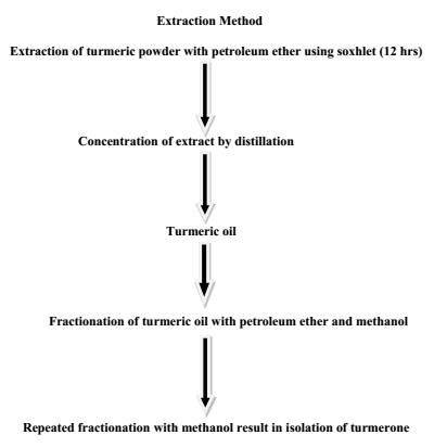 Extraction and isolation of turmerone: Harvested turmeric rhizomes of the different levels of nitrogen were taken to the lab, in the lab these turmeric rhizomes were washed and after they were washed, the clean rhizomes placed in a sieve to allow water to drain.