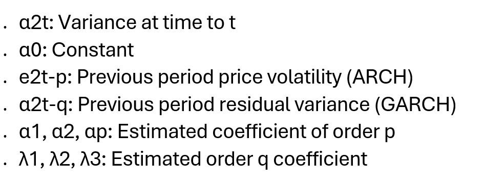 Here is the GARCH (1,2) model of beef prices in global markets:
