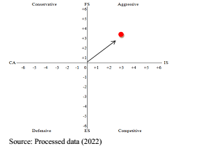 From the results of the CPM Matrix questionnaire, it can be seen that the company's competitive position compared to competitors. Based on the CPM Matrix, it appears that the competitive position is superior to its competitors with a score of 2.8 (Table 11) [13].