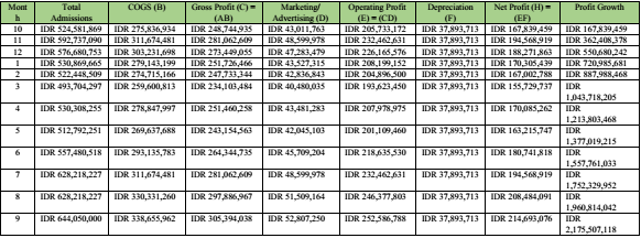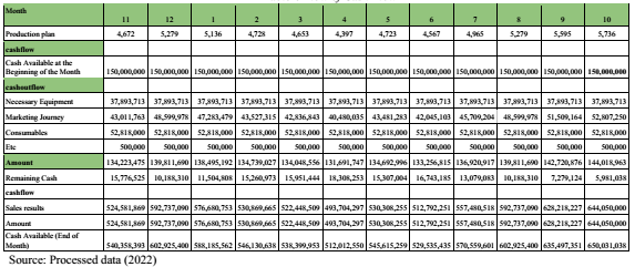 Working capital is the capital used to finance the operations of Duta Koi during the company's activities. Working capital consists of fixed costs (fixed costs) listed in Table 14 above and variable costs. Fixed costs are costs that are not affected by the ups and downs of the resulting production. The company's fixed costs are incurred every month to carry out production, consisting of leadership salaries, employee salaries, maintenance costs and some office inventory needs. Variable costs are costs used for the operational process of the koi fish business [8].