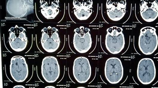 Figure 2: CT scan showing calcified lesion in frontal lobe of brain