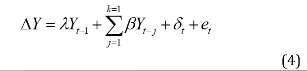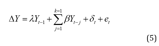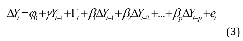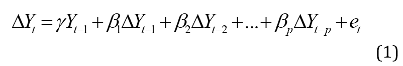 follow an AR(p) process; lagged terms (differenced terms of the dependent variable) are included in the ADF regression model as explanatory variables. The model of the ADF UR tests is specified below as: