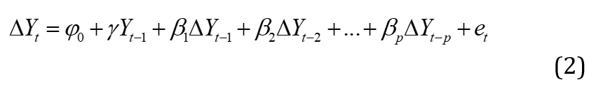 In equation (1), p represents the number of lags augmented into the equation in the lag selection process. Since this version of the ADF UR has no intercept term or a time trend, the t-statistic is adopted with the OLS estimate of ɣ. The main weakness of this variant of ADF UR is that, it is left-tailed (skewed to the left with a left-sided long-tail).