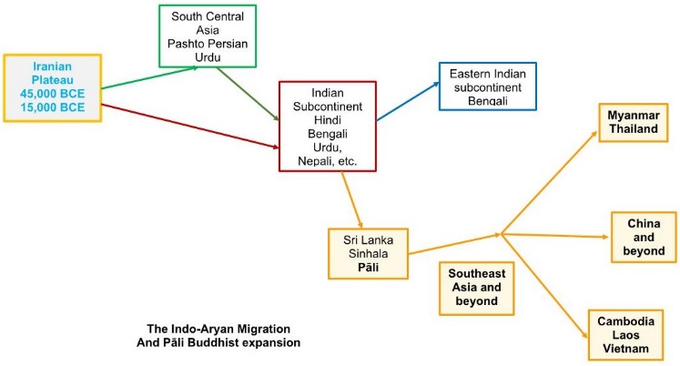 Figure 2: The Indo-Aryan Migration and the Spread of Pāli and Indic Languages