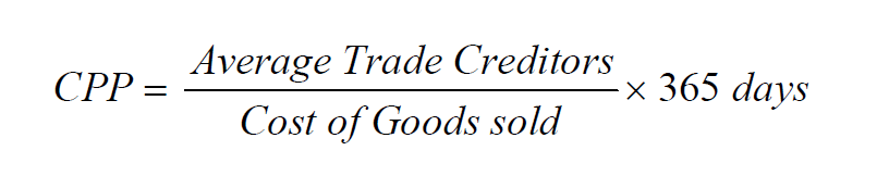 CPP ratio is calculated by dividing Average Trade Creditors by Cost of Goods Sold and multiplies the result by 365:
