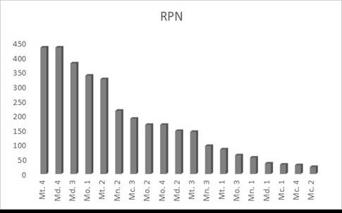 After all the risks have been identified, the dominant risk is determined by sorting the RPN results from the highest to the lowest using a Pareto diagram.