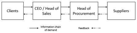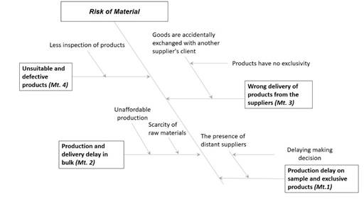 Sources of method risk were first identified from misinformation and differences in perceptions of demand for custom and exclusive products caused by the length of the information chain. The demands come from the needs of clients abroad, then forwarded to the CEO or Head of Sales PT. AST. Furthermore, the client's needs will be explained by the Head of Sales to the Head of Procurement and after that, the Head of Procurement conveys the demands to suppliers across regions. The feedback given by the supplier to the client is not directly conveyed; of course, they have to communicate it to the Head of the Procurement of PT. AST then forwards it to the Head of Sales or the CEO. The CEO or the Head of Sales will convey the feedback to the clients. In long information, the flow of communication and the delivery of feedback is often hampered by several problems such as time differences, language differences, internet connections and other activities that affect much time, which causes activity supply and demand to be neglected. Therefore, misinformation and differences in perception are defined as the impact of risk in this case (Md. 1) (Figure 4).