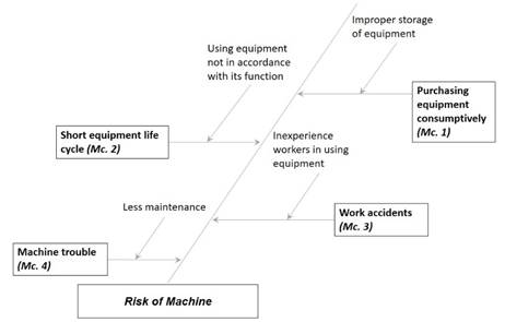 The risk of machine (Mc. 4) is caused by a lack of checking or maintenance. The risk results in machine failure at an unexpected time. The things that are most often encountered and very dis-turbing activities are forklift breaking when loading handicraft products into containers or un-loading them from expedition vehicles into the warehouse and also the failure of company inven-tory vehicles (Figure 7).