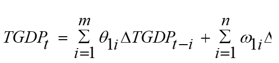 TGDP | -4.319171 | -3.959148 | -3.081002 | -2.681330 | 0.0051 | 1(1) |