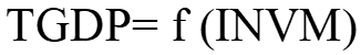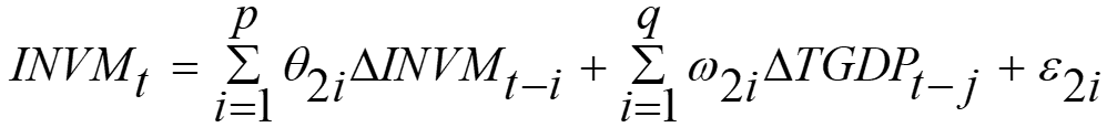 TGDP does not Granger cause INVM INVM does not Granger cause TGDP | 16 | 2.64236 0.41465 | 0.1156 0.6705 | There is no causality between INVM and TGDP. |