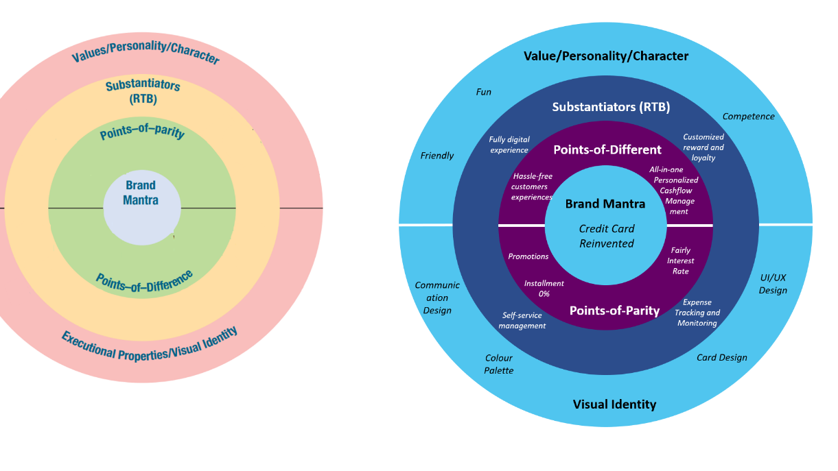 First element is brand mantra which is the first step to determine brand positioning. Kotler defines brand mantra as the enunciation of brand’s heart and soul. It acts like other branding concepts such as “brand essence” and “core brand promise” to represent the fundamental aspect of the brand and as a guidance to any marketing activities conducted by internal employees or external partners. Brand mantra builds guidance beyond tactical strategy including how the campaigns run and how the portfolio being managed.
