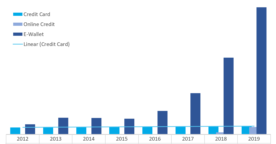Lending-based fintech has accelerated growth in payment landscape and disrupted Credit Card industry. Different from Credit Card, lending-based fintech specifically targets millennials, marginally creditworthy borrowers, and the unbanked, segment markets that have been avoided by the majority of banking products due to higher risks [7]. Until now, the majority of banks that offer credit card products in Indonesia still avoid targeting first card users that are dominated by millennials. Therefore, even though Indonesia’s consumption spending increases exponentially, Millennials as the biggest chunk of the market is not being tapped by Credit Card Industry. It explained the stagnant growth of Credit Card compared to fintech - based lending [4].