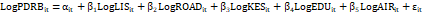 is a parameter vector; it shows the region at a specific time; ε is the error term; log is a logarithmic transformation.
