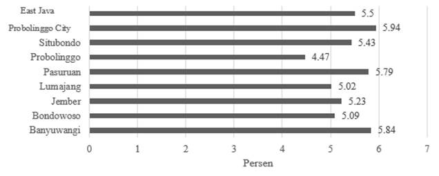 Figure 1. Economic Growth in the Tapal Kuda Area and East Java Province in 2018 (Source: BPS, 2019)