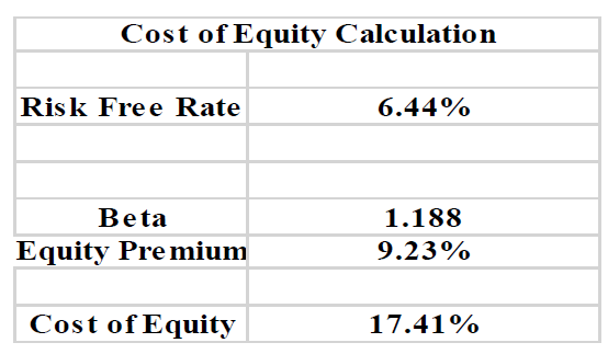 Figure 16: Cost of Equity Calculation (Author Analysis, 2023)