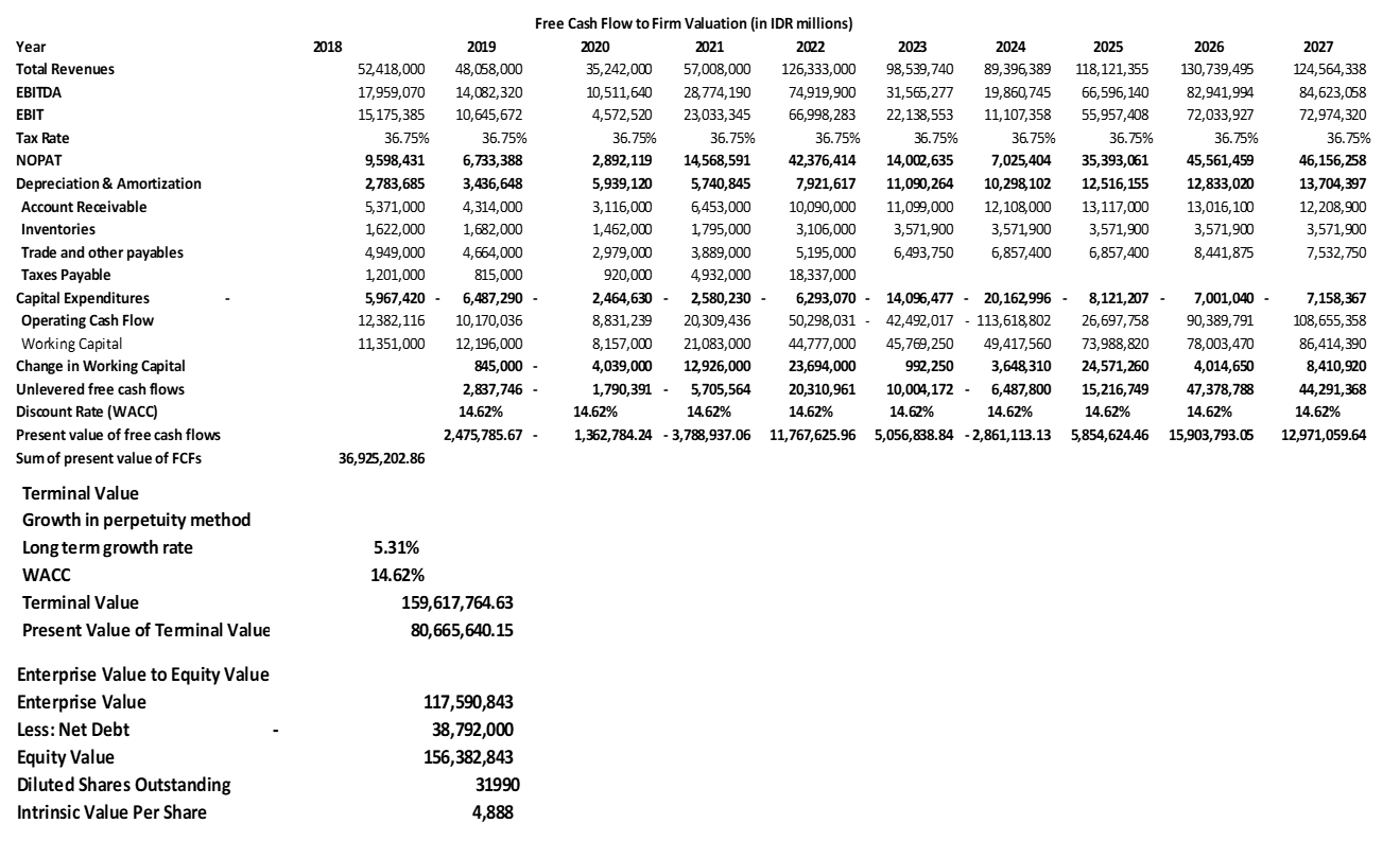 Figure 18: Free Cash Flow to Firm Valuation (Author Analysis, 2023)