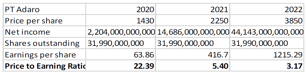 Figure 19: Price to Earnings Ratio PT Adaro (Author Analysis, 2023)