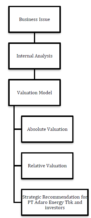 Moving on to the detailed company analysis, which examines the approach used by PT Adaro as well as the company's financial position and performance using ratios and financial data obtained from secondary data or annual report. Based on the analysis, the value analysis will be carried out utilizing the Discounted Cash Flow Method (FCFF). Additionally, study of the intrinsic share value of PT Adaro will be conducted to evaluate. The conceptual framework's final output is a strategy suggestion that will assist PT Adaro strengthen its position and create a long-lasting competitive advantage.