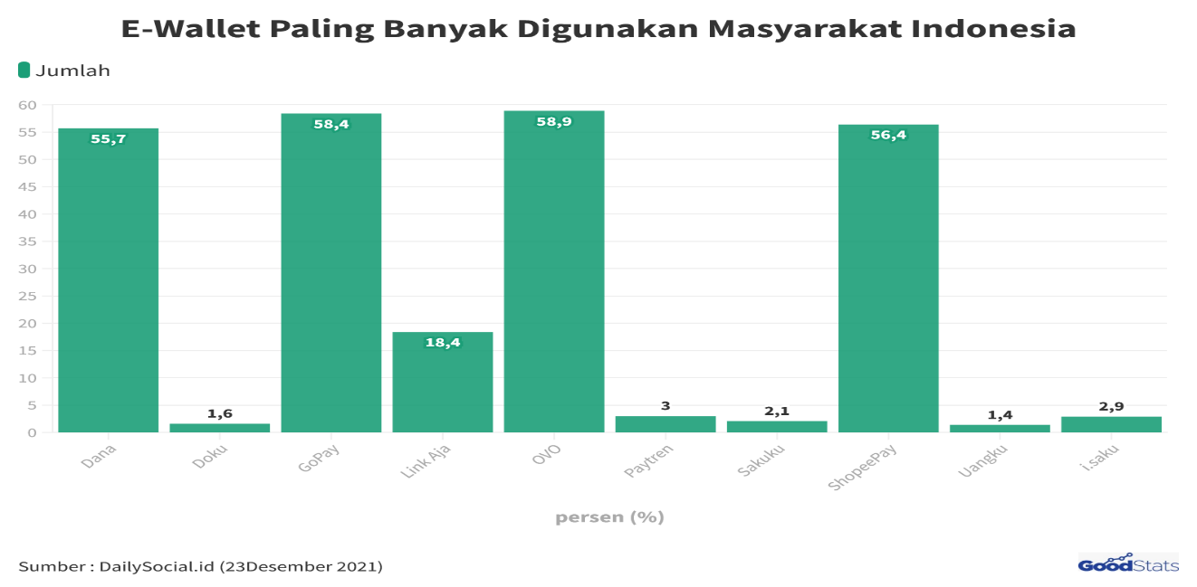 Vania. "Frekuensi penggunaan dompet digital di Indonesia." Katadata Databooks, 2022.