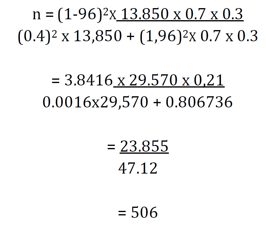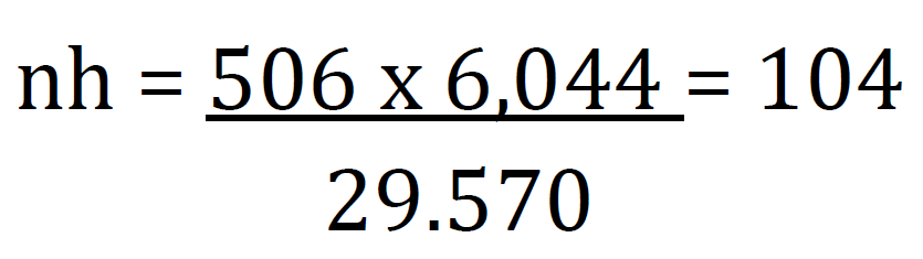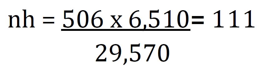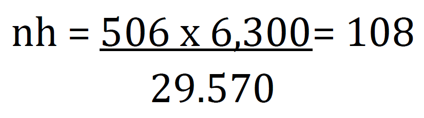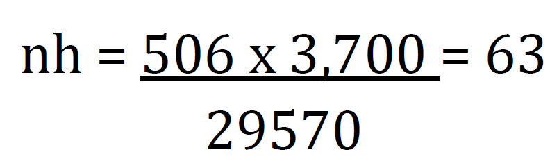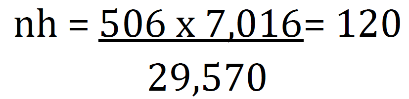 Again, the Bowley’s Proportion Allocation Formula was used in sharing the sample size between the five sample organizations as shown below: