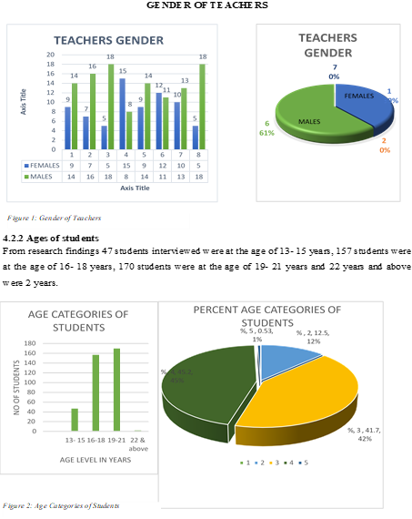 Gender of Respondents: From a total of 276 students interviewed, 59% were males while 41% were females. For the 184 teachers interviewed, 61% were males and 39% females.