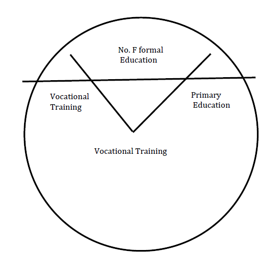 The Table 4 depicts the educational status of the sample respondents, The table shows that one–fifth of the sampled respondents had no formal education.10% of the respondents had primary school education,46% had Secondary School education, nearly one-fourth had vocational training while none of the respondents attained tertiary education.