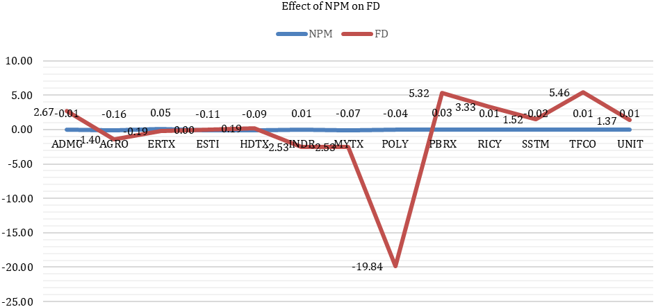 The graph shows that each company has the value of NPM and FD which can be said to be interrelated because it