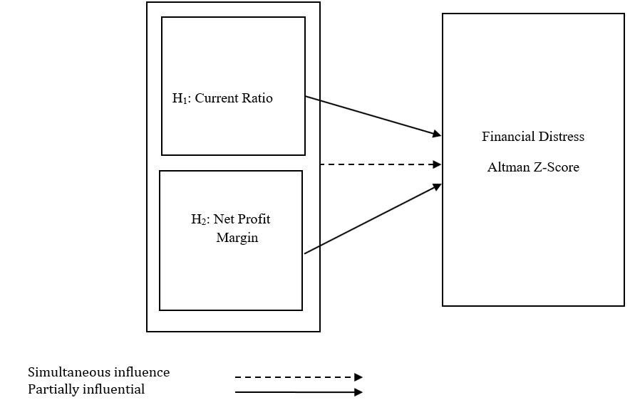Companies that experience financial distress or Financial Distress can result in bankruptcy. Prediction of financial distress in a company can be made through the analysis of the company's financial statements. Test one by one financial ratio and categorize whether these ratios have a positive or negative effect and are significant or not significant to the company's Financial Distress conditions. This can also be proven by calculations using the Altman Z-Score model that can predict the presence or absence of Financial Distress in a company. Some ratios that can be used in predicting a company's Financial Distress include liquidity ratios and profitability ratios.