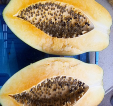 Therefore, the observed changes in the seed colour inside papaya fruits (Figure 1a) at different stages of ripening is not unexpected. The reports of Ocampo et al., (2006) and Aikpokpodion, (2012) [13,14] had attested to the fact that papaya exhibits a wide variation in many traits which include plant height, fruits shape, size, leaf characteristics and taste of the fruits.