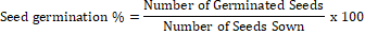 The total number of germinated seeds were counted at 14, 16, 18 and 20 days after sowing (DAS) at 12.00 noon. Data on plant heights were collected from 10 randomly selected seedlings from each sac by measuring the plant from the base to the highest leaf and recorded in centimetre (cm) while the number of leaves were obtained by counting the total number of visible leaves on the selected seedlings.