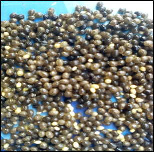 The cleaned seeds were air dried in the laboratory for 5 days and then assigned as Treatment 1 Orange submerged (ORSub), Treatment 2 Orange float (ORFlt), Treatment 3 Black submerged (BLSub) . Meanwhile, Treatment 4 Mixture (MIXtu) that served as the control for this study was computed by randomly selecting 15 percent of the number from each of the seeds counted in Trt 1, Trt 2 and Trt 3 respectively. These were collated by summing up as (56+13+24= 93seeds). The same procedures were used for trial 2 (39+8+17= 64 seeds) (Table 1). For trial 1, after deducting 15 percent, the remaining number of seeds for treatment 1, 2 and 3 were therefore 317, 74 and 137 while for trial 2 has 220, 44 and 99 seeds while the mixture (control) were 93 and 64 (Table 2).