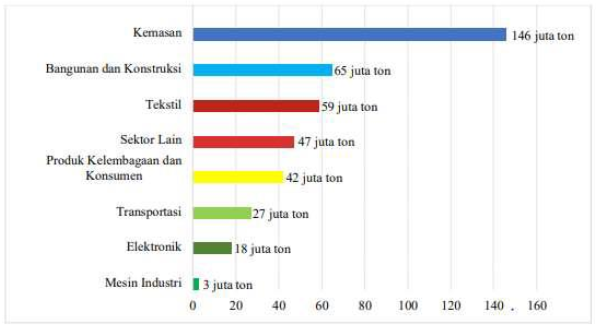 Based on Figure 1 above, it can be concluded that the largest contributor to waste is food and beverage packaging, with the largest number being 146 million tons per year. This phenomenon can occur due to the increasing use of plastic waste, which is indirectly caused by the large number of products produced by several industries using packaging made from plastic materials that are not environmentally friendly, so that the plastic cannot be biodegraded by nature (Gultom, D. N., & Widodo, A. 2021) [3].