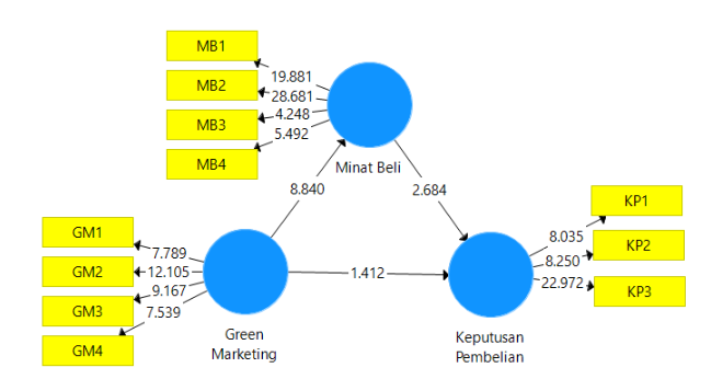 The buying interest variable can be an intervening variable in green marketing on purchasing decisions. This means that if green marketing increases and provides good performance, buying interest will improve so that it will affect purchasing decisions. Then the level of consumer purchases will also increase if consumer buying interest increases.
