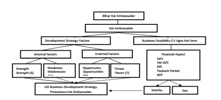 Thinking Framework: This research was conducted to find out whether the company is feasible to run through a financial feasibility analysis and formulate a development strategy at UD. Prosperous Koi Ambassador [4,5].