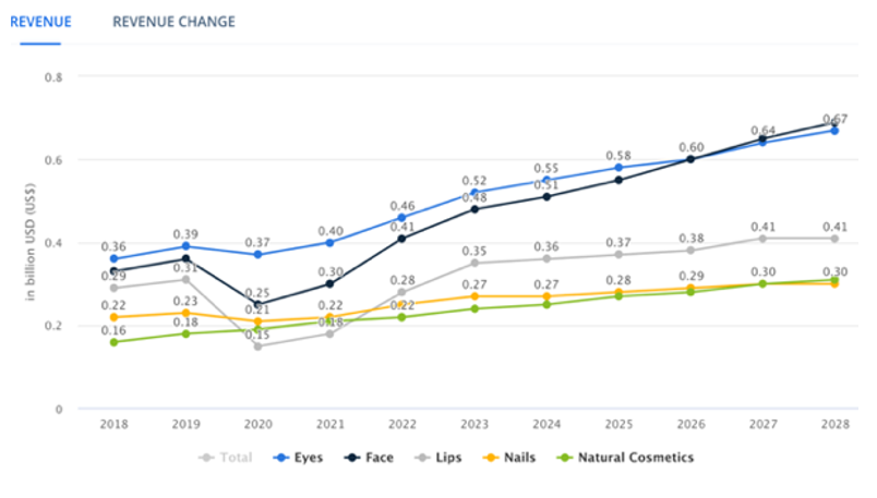 Figure 1: Cosmetics Revenue in billion USD