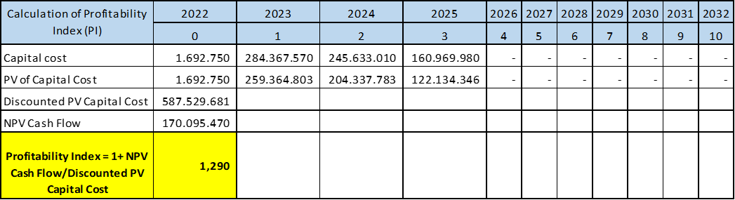The result of PI makes this project attractive as the higher PI makes the project become more attractive, with the lowest acceptable PI is 1