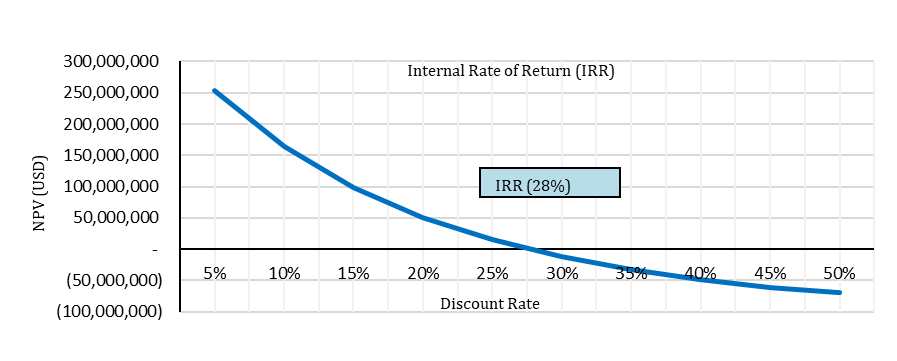 In this project, the Internal Rate of Return (IRR) is 28%, meanwhile the discount rate is 9.64%. The Internal Rate of Return (IRR) is higher than the discount rate means the project is financially feasible to undertake