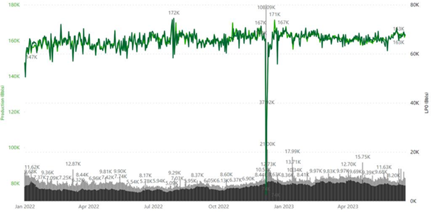 PT XYZ is the biggest contributor to national oil production. The average of PT XYZ’s oil production is 160 thousand barrels per day (Figure 3) which is about 15% of national oil production. In order to support the target Government of Indonesia has set before, PT XYZ tries to develop the existing reservoirs because some of the reservoirs owned by PT XYZ have not fully produced at its maximum. According to [1], “Approximately 60%-70% of the oil in place cannot be produced by conventional methods.” The rest of oil in reservoirs can beproduced by