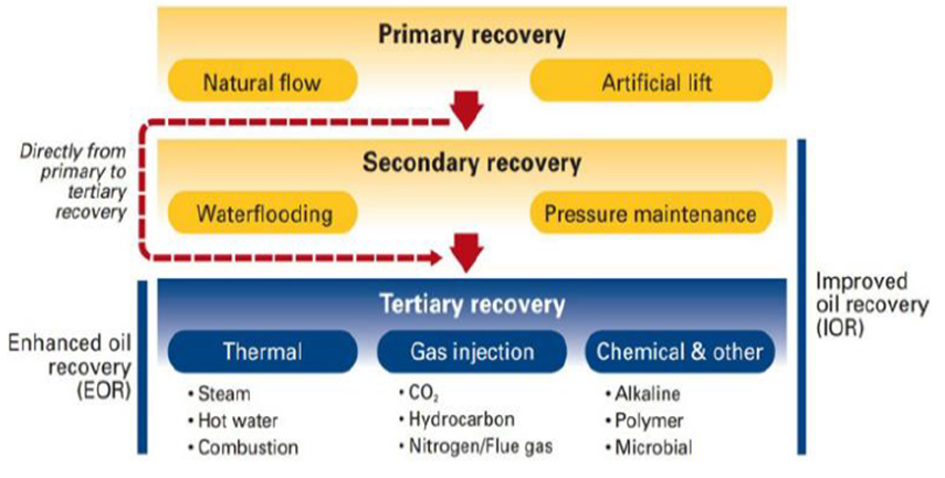 Alagorni, A. et al. "An overview of oil production stages: Enhanced oil recovery techniques and nitrogen injection." International Journal of Environmental Science and Development, vol. 6, no. 9, 2015, https://doi .org/10.7763/ IJESD.2015.V6.682.