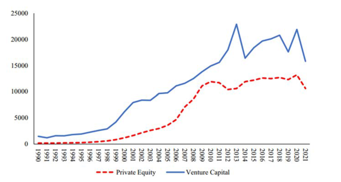 Figure 4: Documents with the words “venture capital” and “private equity” found on Google Scholar [2]