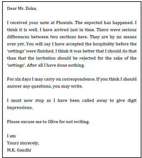 Doke’s biography is dated 1909, yet it can be established from the evidence of several letters written in the year 1908 that an intimate friendship and political alliance had been forged between Gandhi and Doke well in advance of the biography’s publication. The following letter by Gandhi to Doke, dated October 8, 1908, is a fine example: