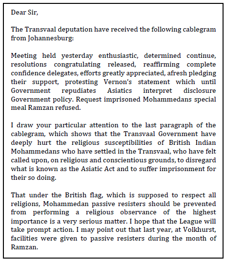 Is there any evidence that Lord Ampthill knew or had ever met Doke, though he denies it? Considering that Doke was so strong a supporter of Gandhiji’s, a committed proponent of satyagraha, the editor of Gandhi’s own newspaper the Indian Opinion, and an activist for the Indian cause in the Transvaal, it stands to reason that Doke would be connected with the delegation accompanying Gandhi to London to present a deposition before Parliament on the question of Indian immigration to the Transvaal. As the president of the South African British Indian Committee, Lord Ampthill had taken personal charge of the deposition opposing a bill that enforced strict restrictions on Indian immigration to the Transvaal. In the following letter, Gandhi thanks Lord Ampthill for his continued support for the Indian cause which he has made his own to use Gandhi’s own phraseology: